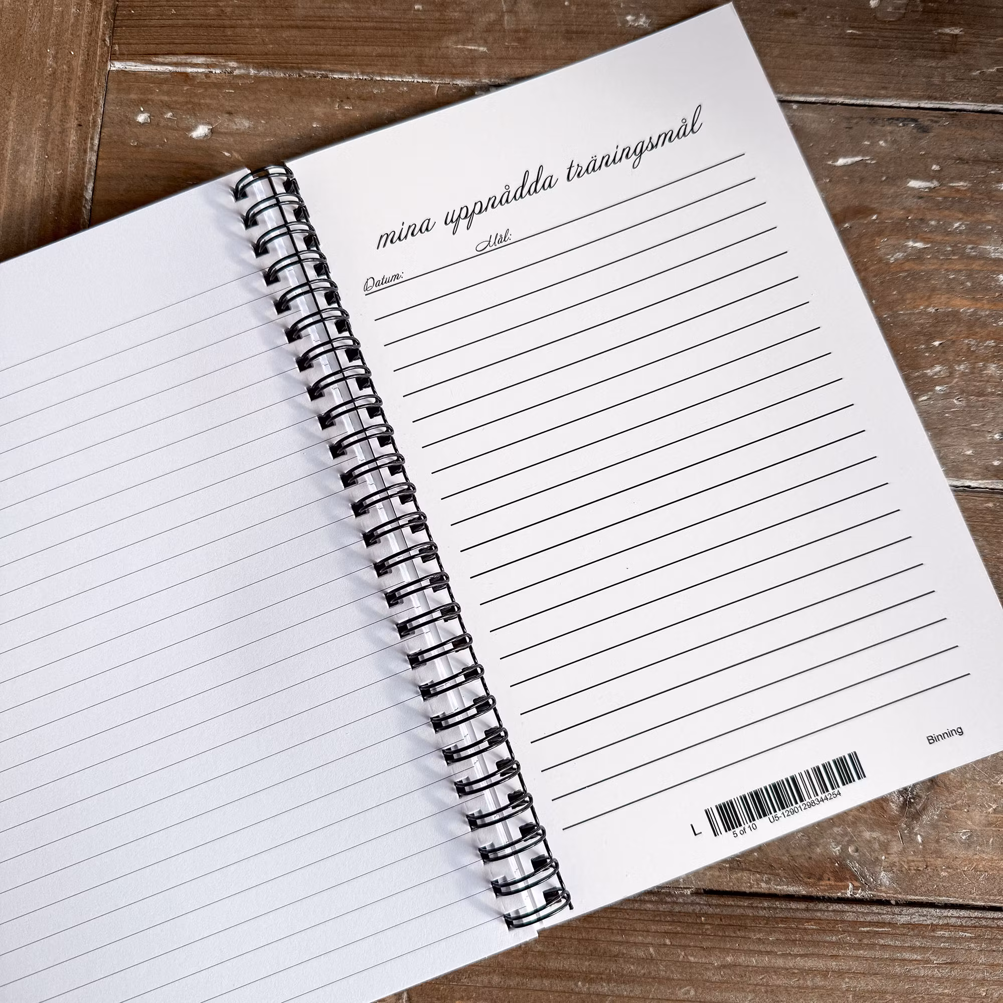 Snyggt anteckningsblock med randiga sidor där du kan anteckna ner träningspass, planering och hur det känns före/efter ett träningspass. Mina sista exemplar!