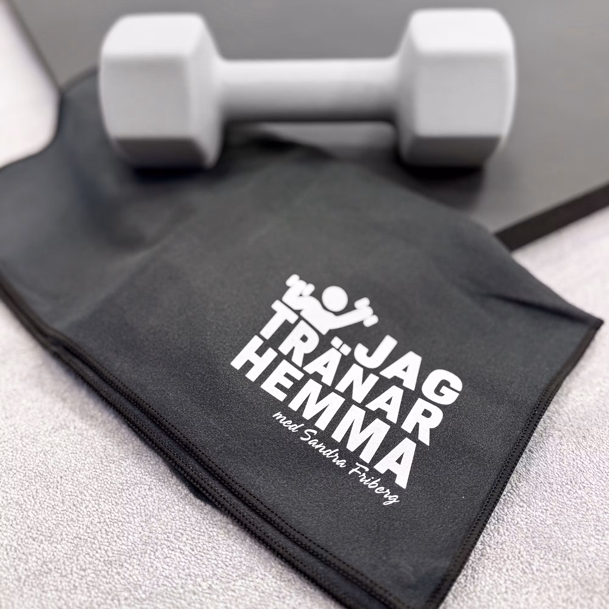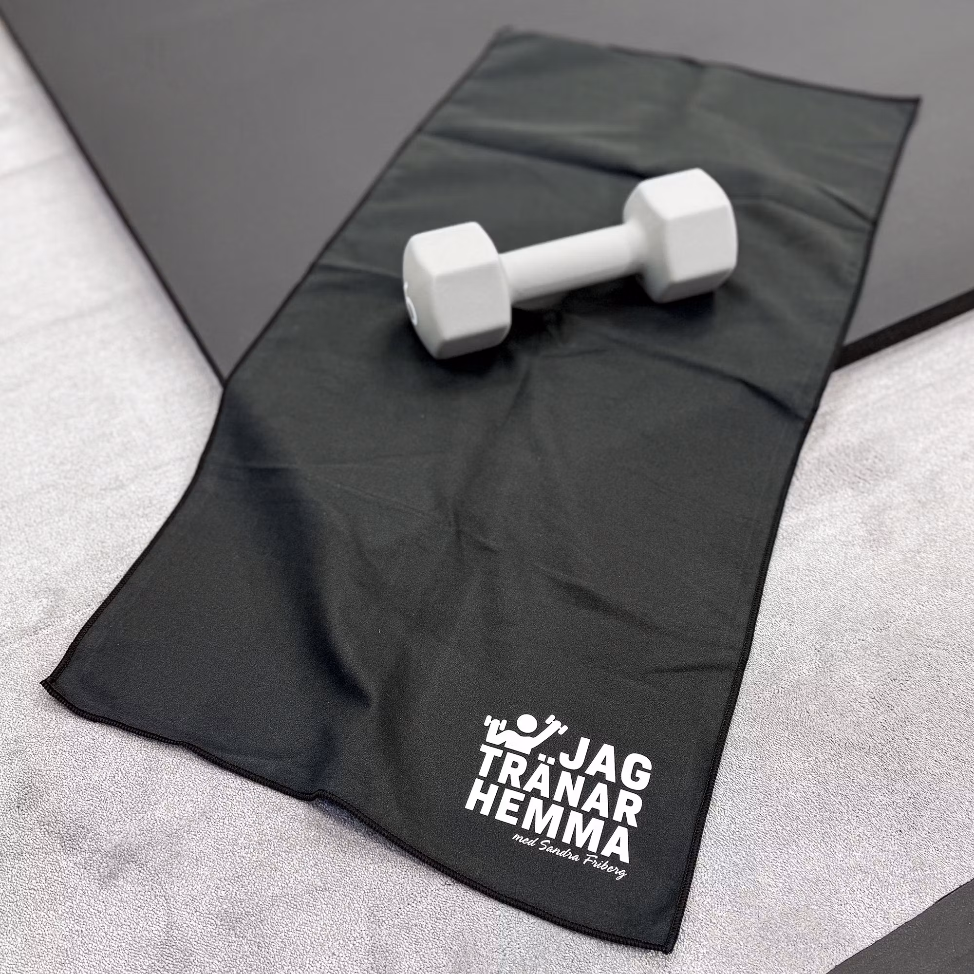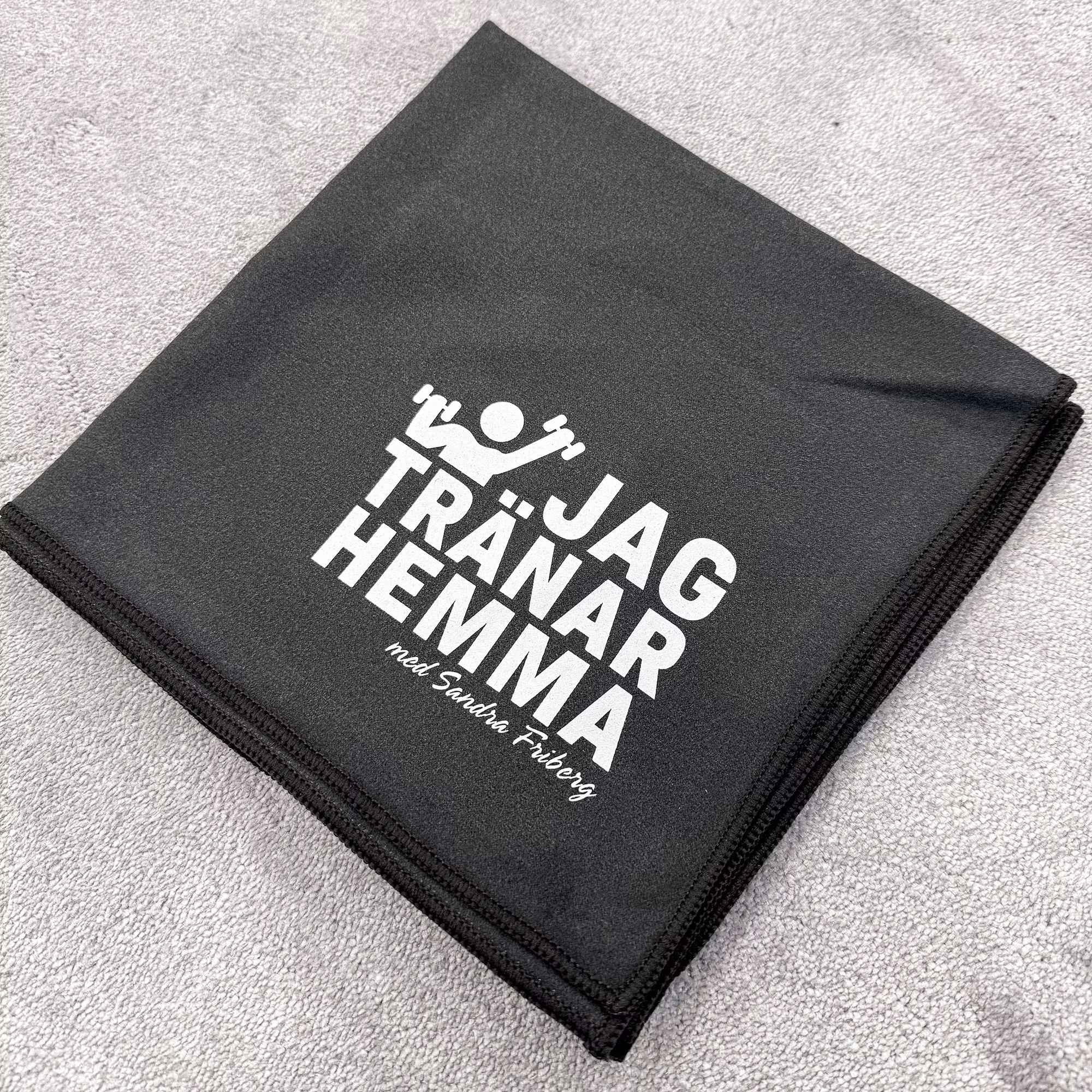 Med denna snygga och stilrena handduk visar du att du är en stolt hemmatränare med mig. Handduken är av svart mikrofiber med snyggt vitt tryck av silkscreen... Handduken är riktigt effektiv för att torka dig torr(are) under träningspasset.